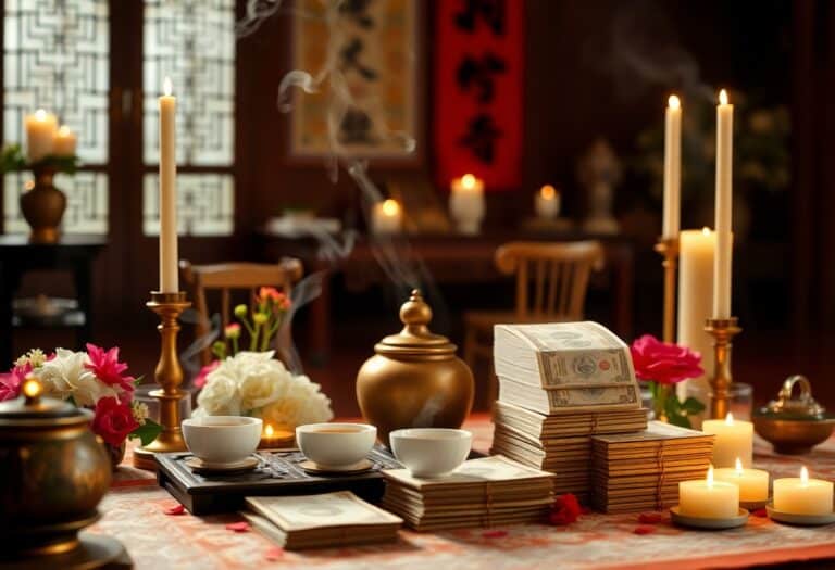 在紀念亡者的傳統中,茶水供品和靈錢扮演…